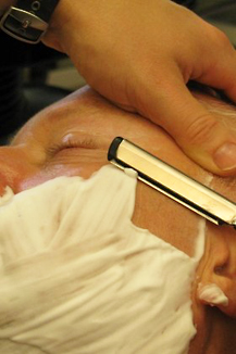 Als spezieller Salon bewahren wir uns den seltenen Service einer traditionellen Rasur mit dem Messer.